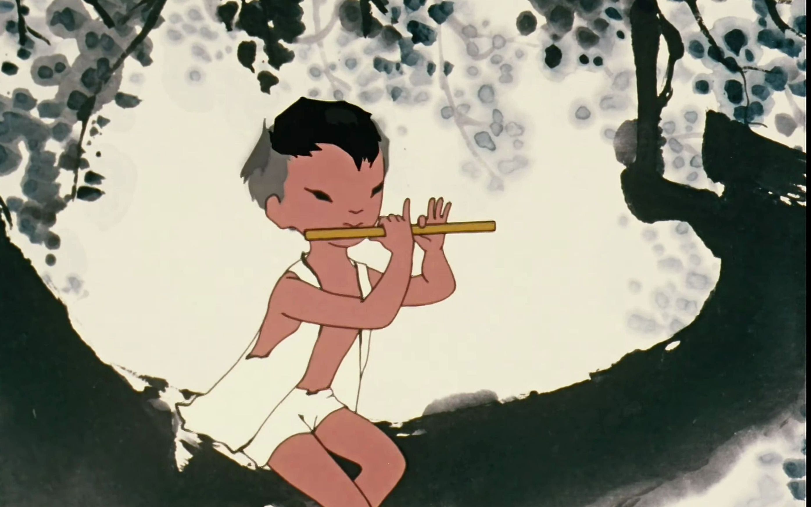 上映时间:1963 年豆瓣评分:9.0 分《牧笛》同样是一部水墨动画的经典之作。它的故事很简单,一个小牧童在放牛的时候睡着了,梦中他的笛子变成了一条大鱼,带着他在水里畅游。影片以中国传统的山水画为背景,将牧童、水牛、山水等元素巧妙地融合在一起,营造出了一种宁静、悠远的意境。悠扬的笛声贯穿全片,让观众仿佛置身于美丽的田园风光之中。大家在看这部动画片的时候,有没有感受到那种宁静和美好呢🤗?
