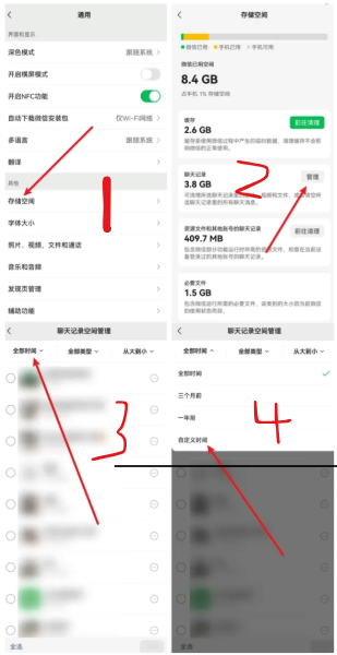 操作路径:设置→通用 →存储空间 → 管理 →全部时间 →选择范围