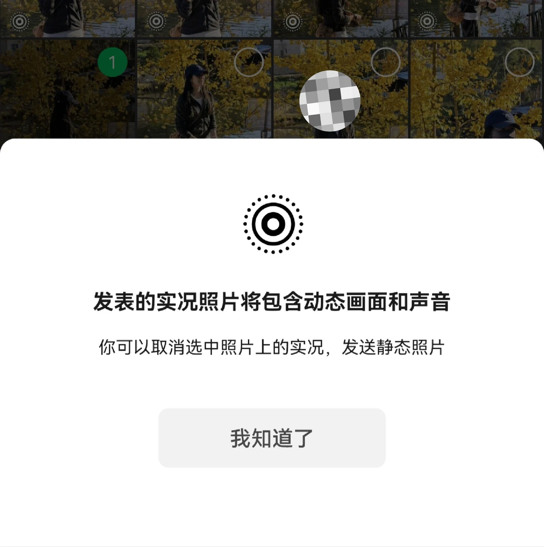 实况功能:发朋友圈 → 选照片 → 查看是否有“实况”开关;