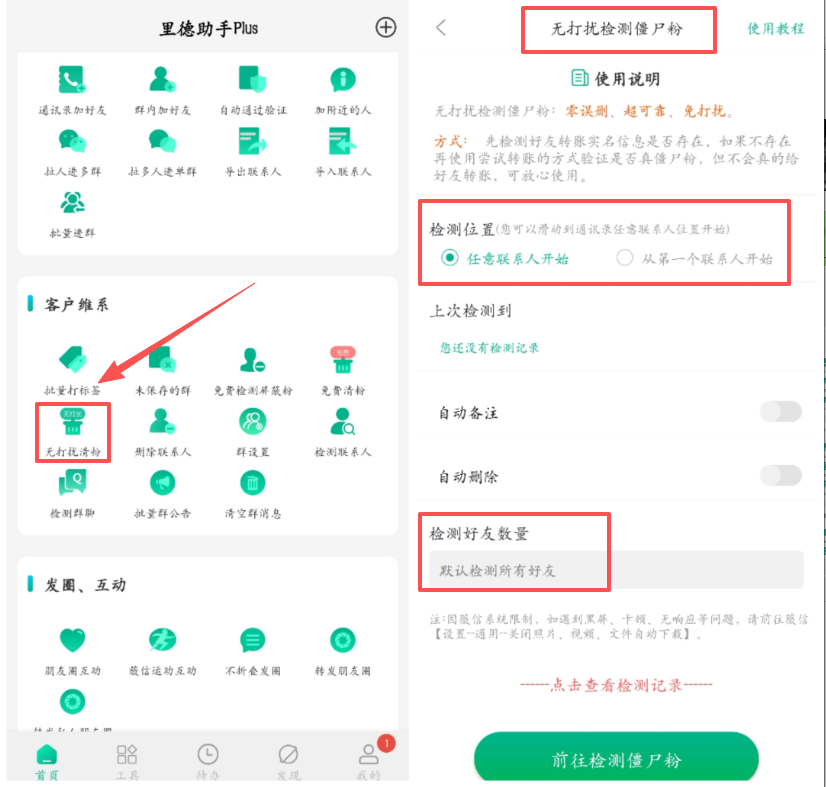 手动清理既耗时又可能误扰真人好友。不妨可以试试【里德助手plus】的无打扰清粉功能。