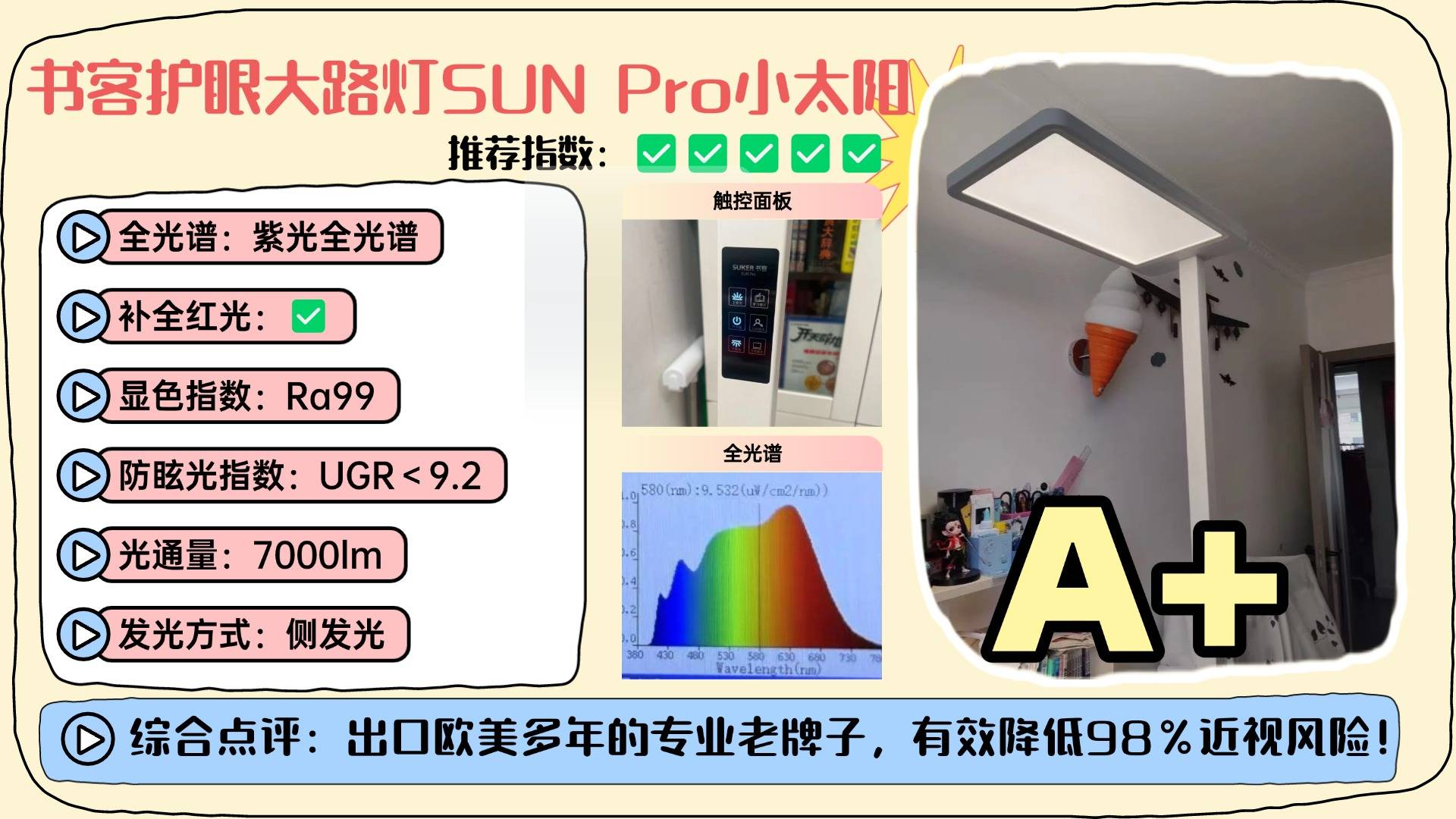 护眼大路灯第一名深度解析:书客护眼大路灯SUN2;获得了众多宝妈们、眼科医生和专业媒体的好评,公认“中高端价位护眼性能最硬核的护眼大路灯”常年霸榜口碑销量冠军之位!