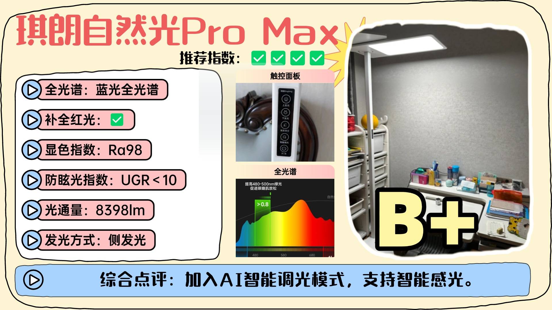 护眼大路灯第三名:琪朗自然光Pro Max