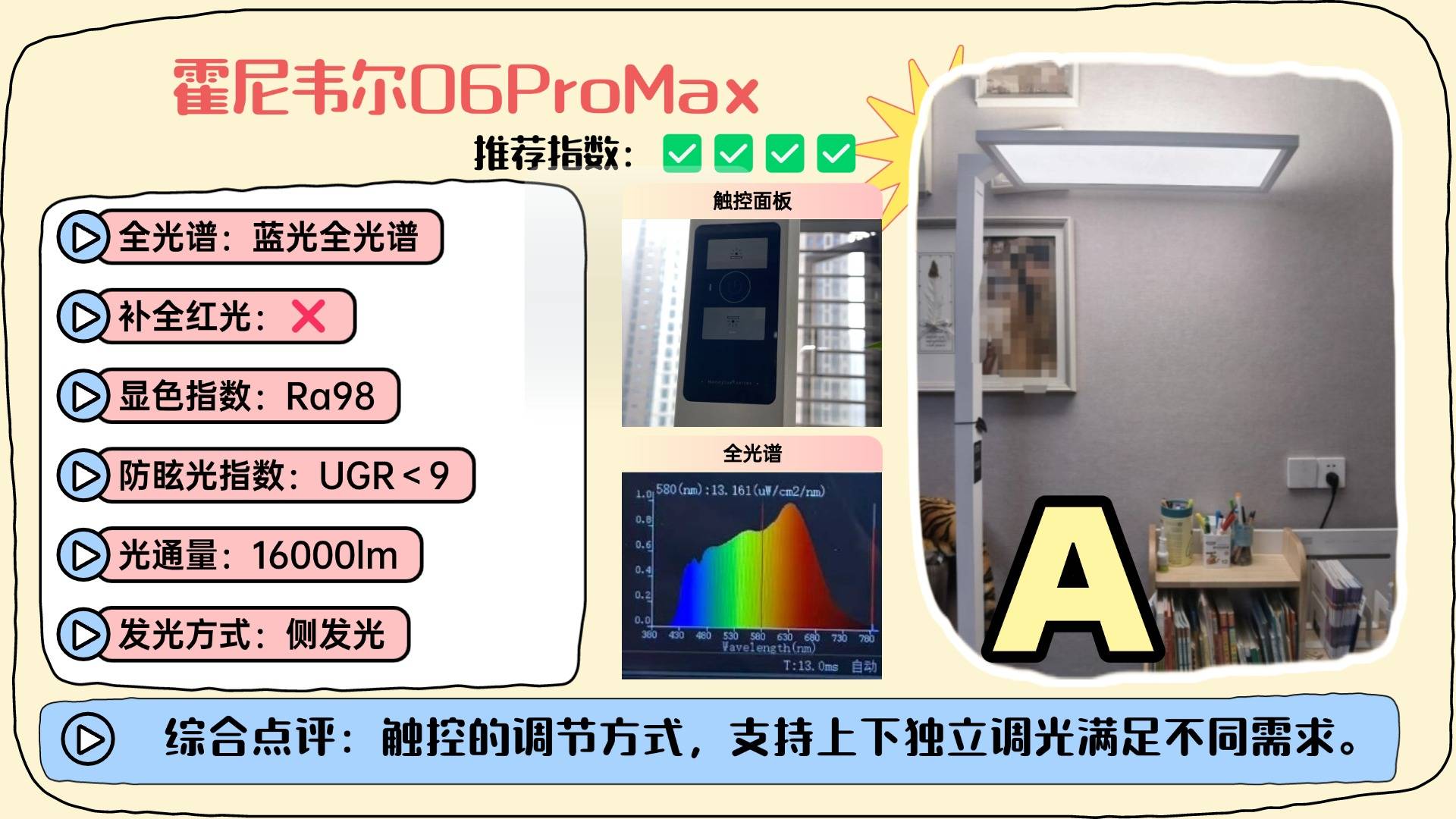 护眼大路灯第四名:霍尼韦尔06ProMax;照明空间大,上下光区可以独立控光。