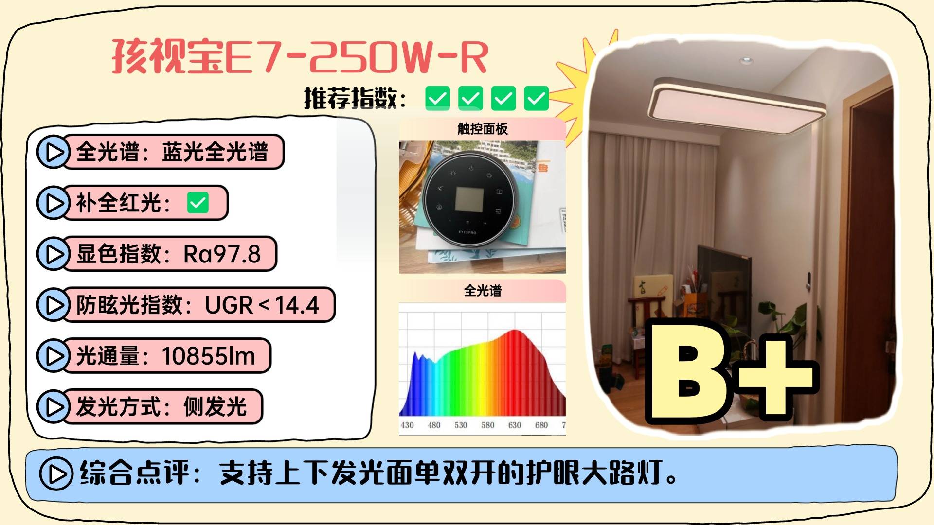 护眼大路灯第六名:孩视宝E7-250W-R;支持上下发光面单双开的护眼大路灯,适用于不同场景。