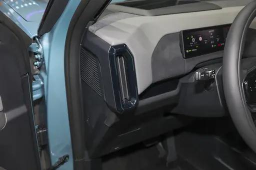 当然,作为新能源车型,它也加入了不少时下流行的设计元素。大面积的封闭式前脸看着很简洁,中间的“BRONCO”字母标识还能发光,晚上开车的时候辨识度特别高,朋友看到都问我这是什么车,颜值这么能打。隐藏式车门把手是新能源车的标配,智趣烈马也没落下,不仅让车身线条更流畅,还能降低风阻,对续航也有帮助。我体验的纯电版本还有一个160升的电动前备箱,也就是大家常说的“前备厢”,平时放个背包、充电线或者洗车工具之类的小东西特别方便,拿取也不用弯腰,比传统燃油车的前舱实用多了。