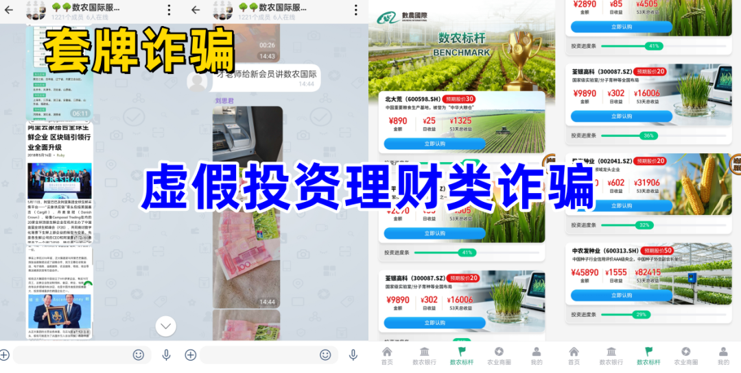 冒牌诈骗。不法分子冒充“阿里巴巴数字农业”公司的名义,制作散布涉诈APP,虚构推广“数农标杆”“数农银行”等高额返利理财项目。