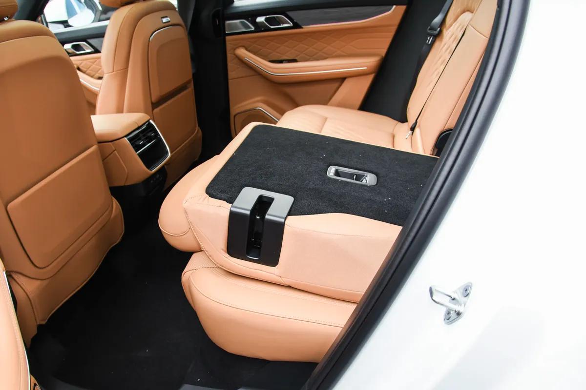 拉开车门坐进去,感觉就是:宽敞,真宽敞,作为一个一米八的大高个,我坐进驾驶位调整好坐姿,头部空间还有一拳多的余量。这台车是大五座的布局,这也正是我这种二胎家庭真正需要的。普通的七座车第三排往往就是“板凳”,而大五座车却能保证每一位家人都坐得舒服。我家孩子今年也窜到了一米七出头,特意让他坐进后排体验了一把。他翘着二郎腿,腿部空间居然还有两拳以上,头部也有四指左右。父母坐在两边,后排座椅坐垫深度能完全承托住大腿,长时间坐着腿不会酸,还有座椅宽度设计合理,三个成年人并排坐也不会觉得挤。后备箱常规容积就有691L,孩子们的滑板车、婴儿车统统塞进去还有富余。如果要把后排座椅按比例放倒,容积能扩展至1522L,直接变身小货车,实用性没得挑。不管日常还是露营,这领克09四驱探索版都合适。