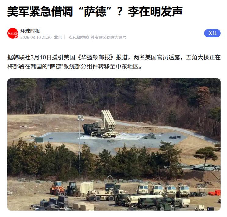 这样的局面让美军坐立难安,前线装备告急、防御漏洞百出,想要快速补上窟窿,美军根本来不及从本土调运装备,只能上演“拆东墙补西墙”的戏码,把目光投向了遍布全球的盟友基地,而韩方星州基地的“萨德”,就成了美军的首选目标。