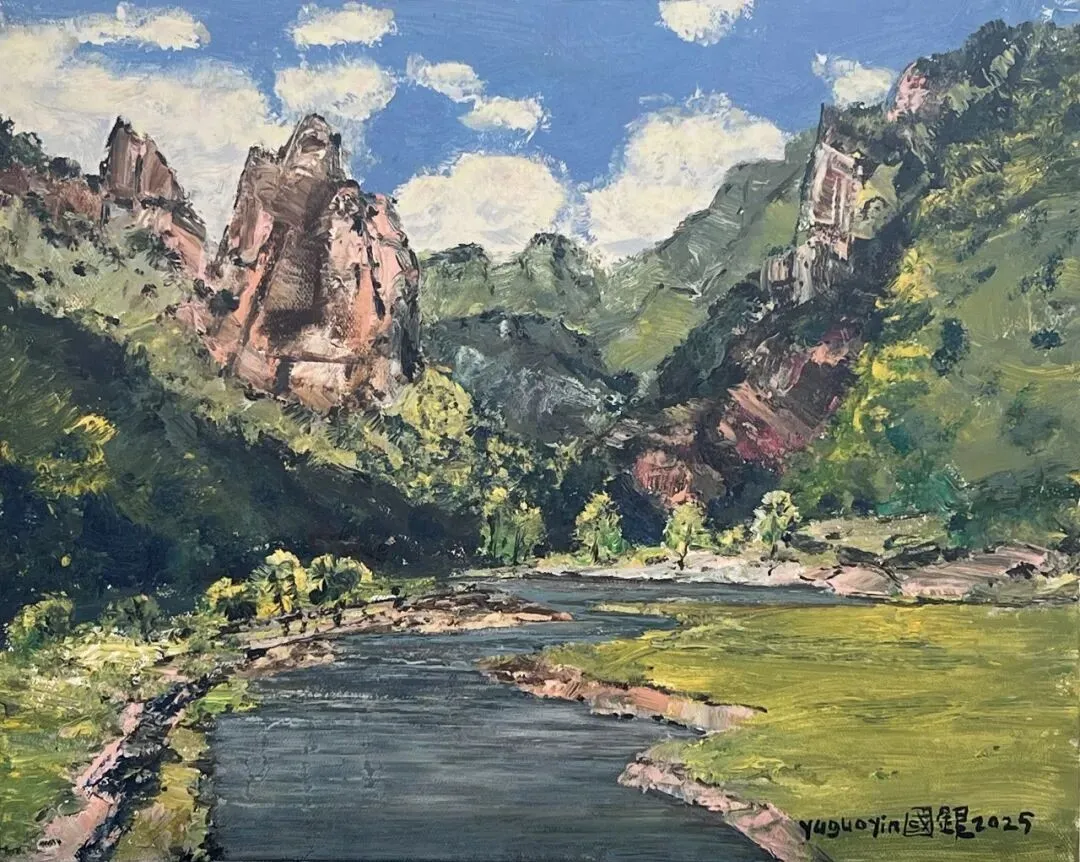 Yù Guoyin is a member of the China Artists Association, painter of the National Academy of Ethnic Art, creative member of the Beijing Contemporary Chinese Freehand Oil Painting Research Institute, Vice Chairman of the Oil Painting Art Committee of the Guoyun Wenhua Calligraphy and Painting Academy, and visiting professor at multiple universities.