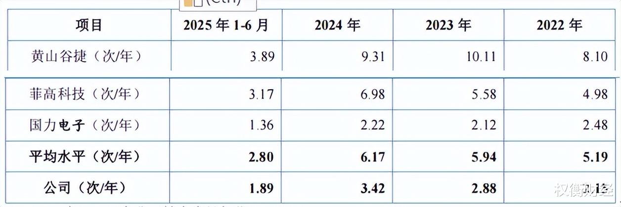 报告期内,公司存货周转率低于同行业可比公司平均水平,主要系低于菲高科技与黄山谷捷,具体原因为:公司包括陶瓷管壳及封装散热基板两类主要业务,材料及产品种类相对较多;同时,公司陶瓷管壳的工序流程亦长于黄山谷捷及菲高科技,综合使得原材料、在产品及半成品等的金额亦相对较高。