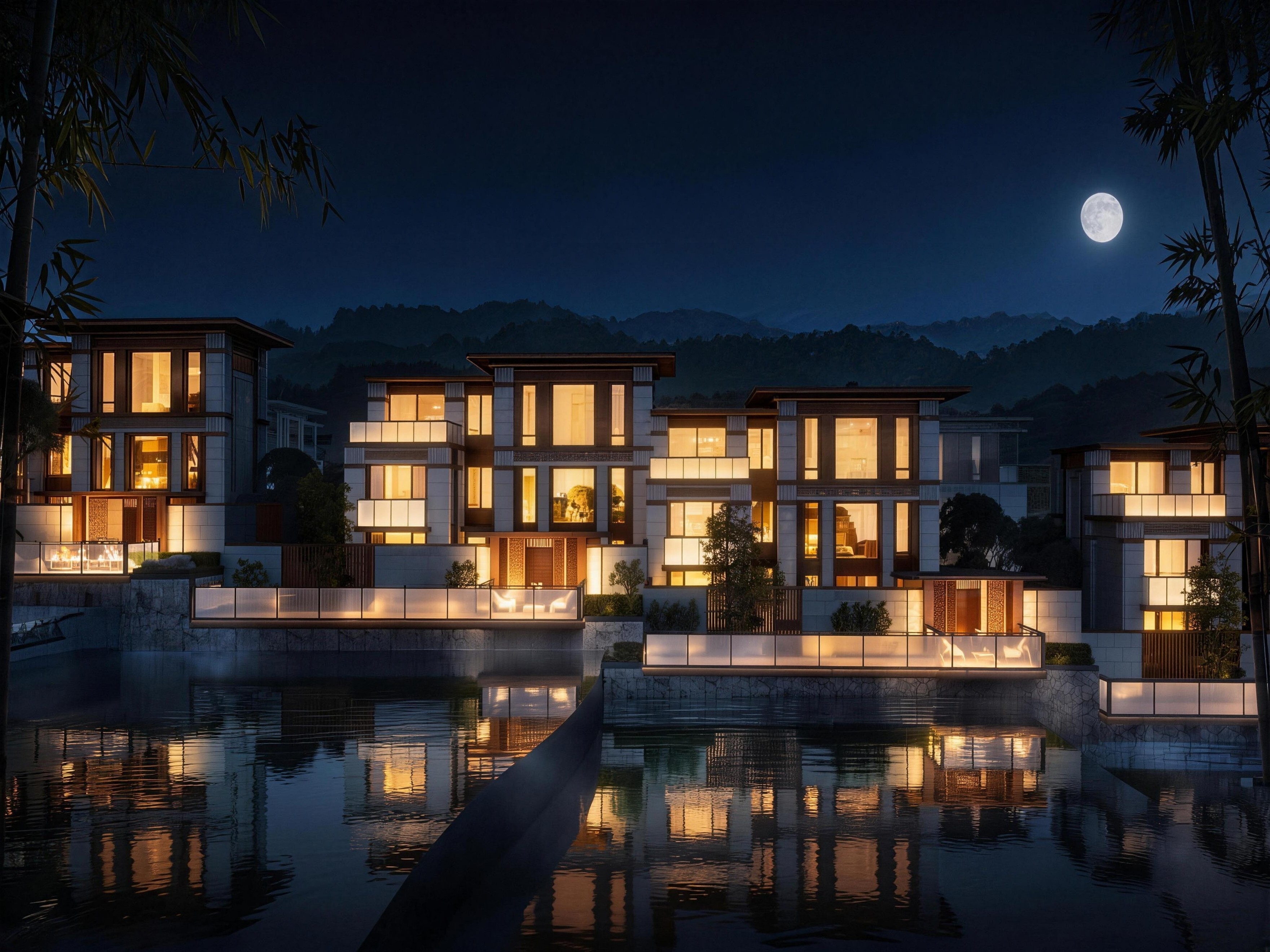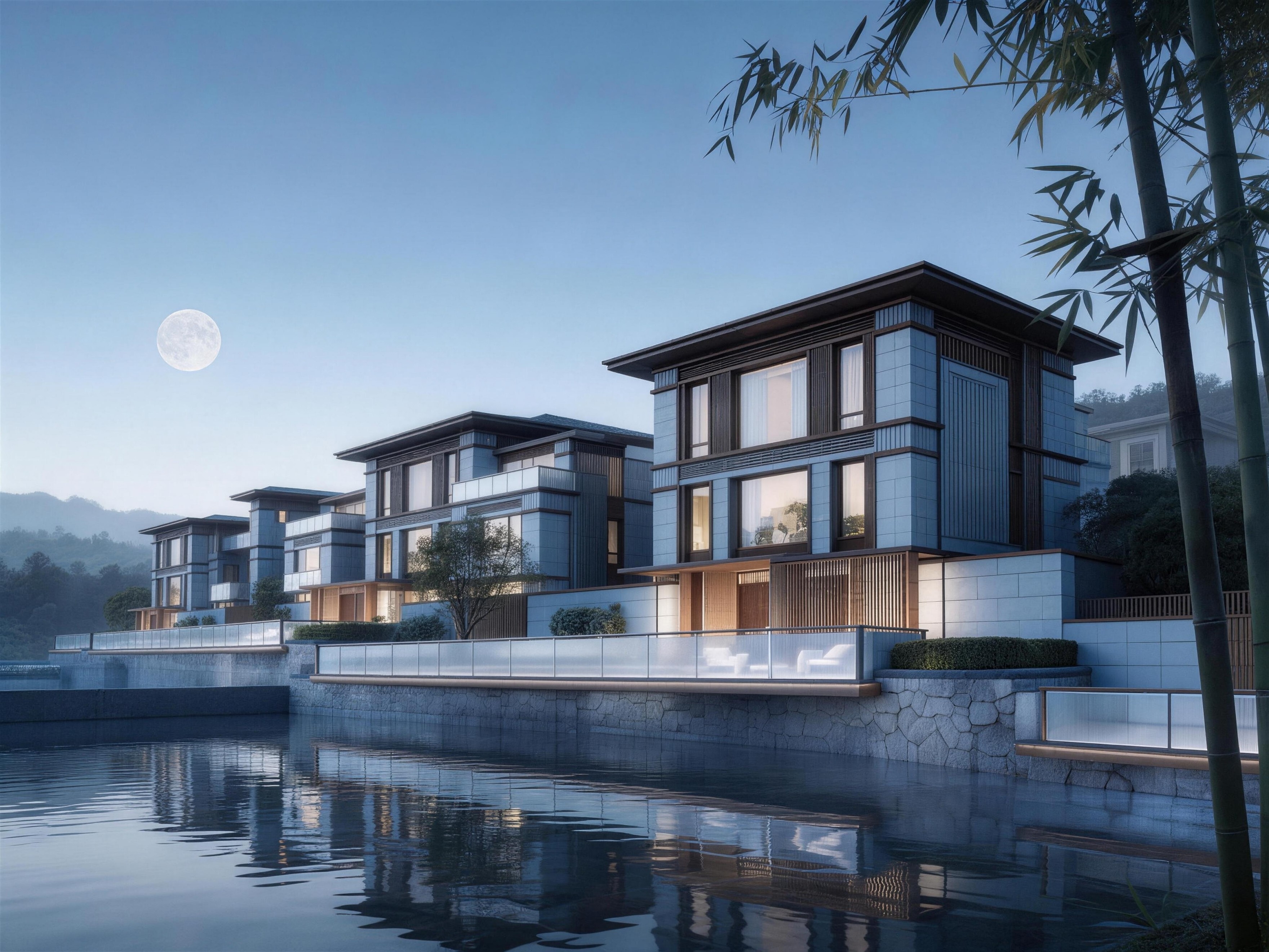 相较于度假酒店的公共性,度假别墅更强调“私密性”与“个性化”。容辉拓创以“一户一境”为设计目标,让每栋别墅成为主人与自然对话的“专属媒介”。