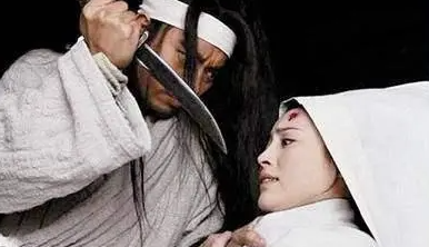 再看老宋杀阎婆惜:宋江左手早按住那婆娘,右手却早刀落,去那婆惜嗓子上只一勒,鲜血飞出,那妇人兀自吼哩。