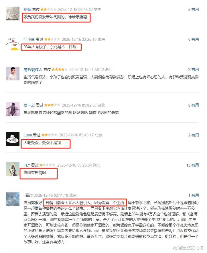 ▶总结:这部年代生活喜剧,整体观感比较一般吧,不算太难看,但是也算不上佳作!而且年代剧不代表剧情就要平淡,该有的故事性还是要有,不然很难吸引观众!