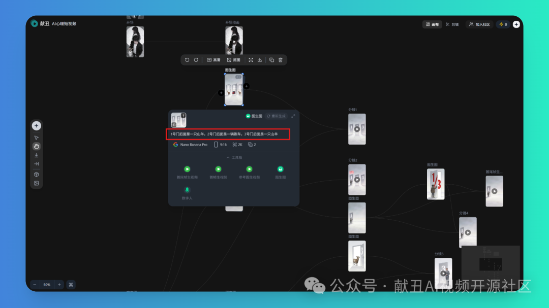 我们以画布式节点创作为核心,构建了一套清晰直观的视觉化工作流:
