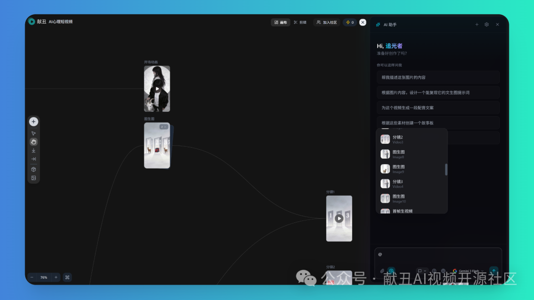这就是 献丑基于画布式节点系统构建,献丑在视频创作中真正实现了: