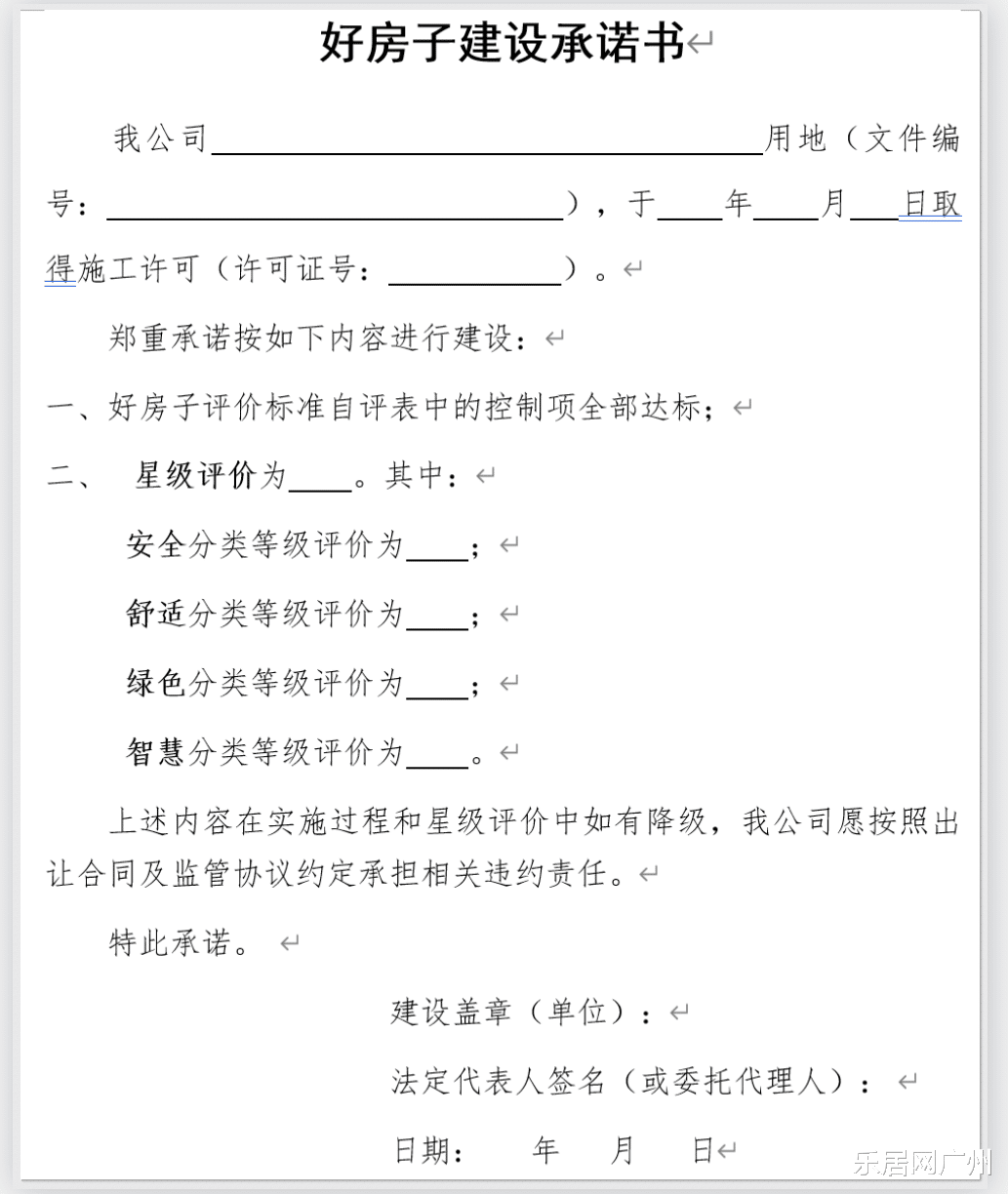 这次广州不一样。在文件的附录里,专门有一份《好房子承诺书》。