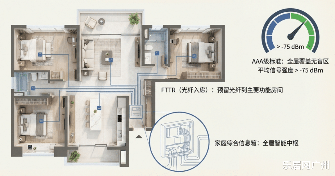 比如,AAA级智能家居要求全屋WIFI覆盖无盲区,且信号强度必须大于-75dBm。