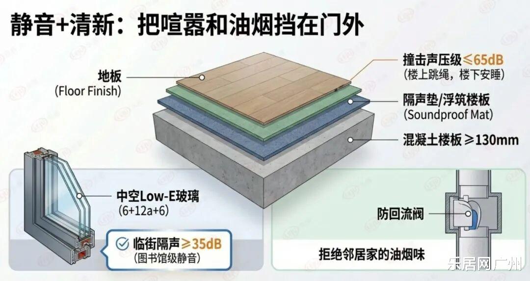 2、专治“半夜听直播”,隔音标准史诗级加强!现在大多数房子,墙体薄得像纸。隔壁吵架、楼上冲厕所、电梯运行的嗡嗡声,听得清清楚楚。