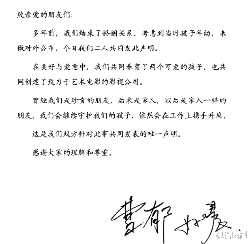没吵没闹,协商一致,共同为离婚封锁消息多年,一直到最终公开;