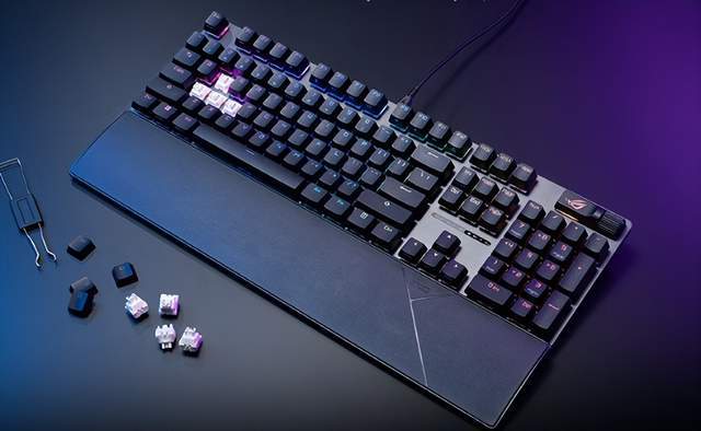 新学期开学买什么?华硕ROG游侠2X机械键盘 是华硕ROG推出的一款有线全尺寸电竞机械键盘,搭载 预润校准的ROG NX机械轴,提供顺滑且迅速的按键响应,适合FPS、MOBA等竞技游戏与日常办公使用。键盘支持RGB背光效果和104键全键无冲设计,外观采用经典电竞风格,并具备良好的敲击手感和耐久性,是面向追求高性能、稳定输入体验的玩家的键盘选择。