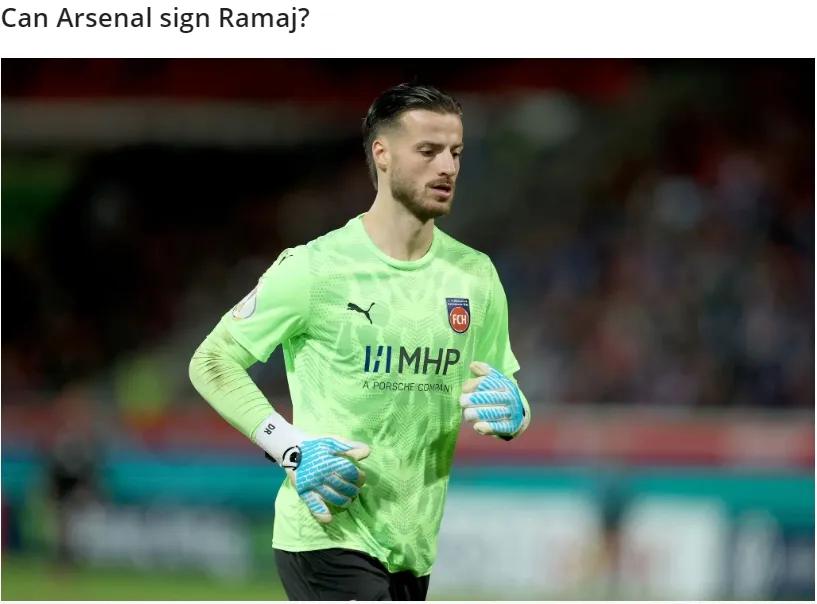 体育图片报主编法尔克在这家媒体上表示,阿森纳有意目前效力于海登海姆的门将迪安特-拉马伊。