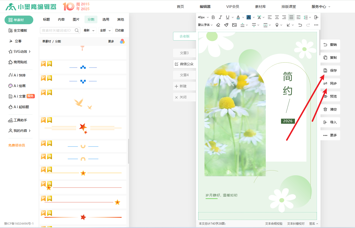 要是想强调某个部分,就去素材库找些简约的分割线、小图标,点一下就能插入。记住一个原则:少即是多,稍微点缀下就行,别弄得太花哨。