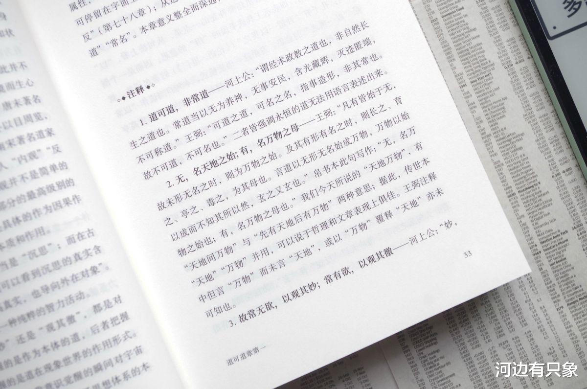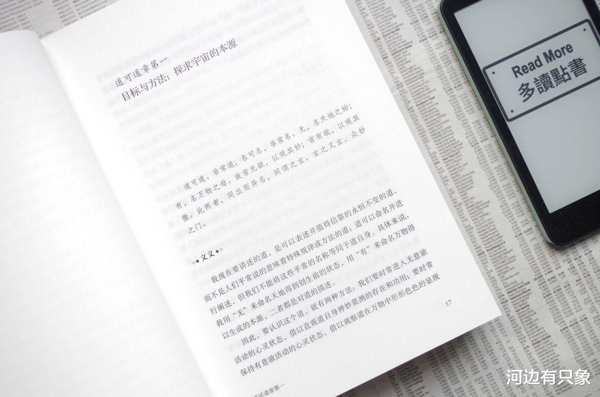 每章下面多了一行主旨,比如道可道章第一的下方就总结了本篇的目标与方法:探讨宇宙的本源。先是《老子》原文,然后是对整篇内容的解释。