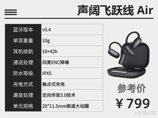 这款耳机用了钛合金天鹅颈设计,单耳9.5g的重量,佩戴起来挺舒服的,不会有压耳的疼痛感;音质表现还不错,搭载了低音增强技术,听歌时能明显感觉到低音部分很醇厚;还支持智能一拖二功能,能灵活切换两台设备,多设备使用的朋友可以考虑入手。只是总续航只有 24 小时,相对来说稍显短板。
