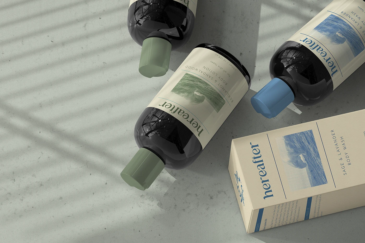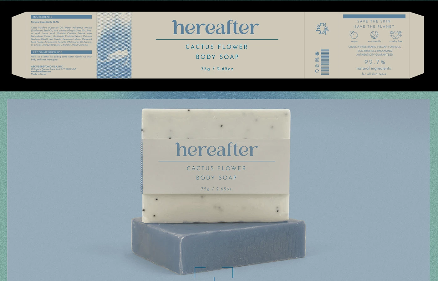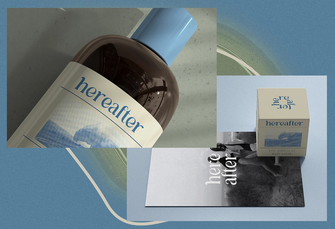 Hereafter的包装设计走的是简约自然路线。整体以大地色系为主,搭配清新的蓝绿色调,给人一种质朴、环保的感觉。
