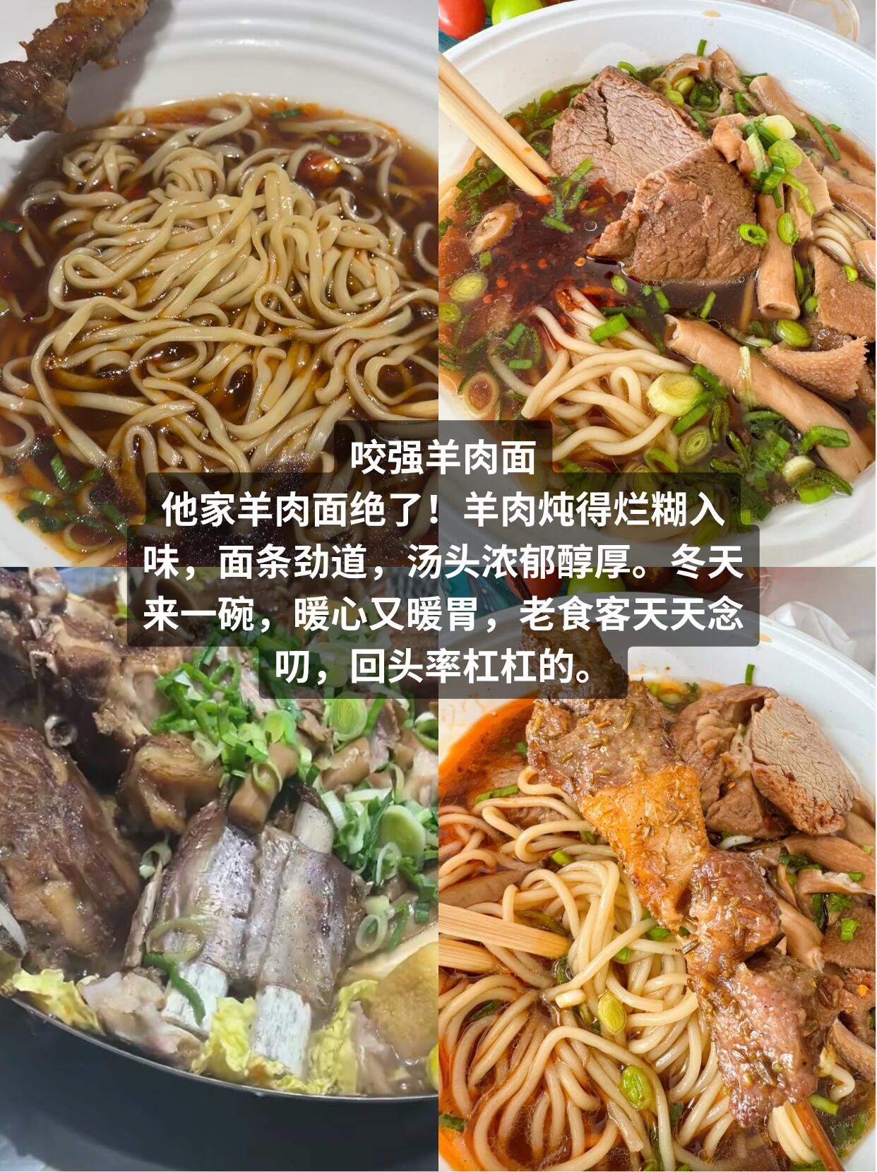 咬强羊肉面:羊肉软烂入味,汤汁浓郁醇厚,面条劲道爽滑,一碗下肚暖乎乎的