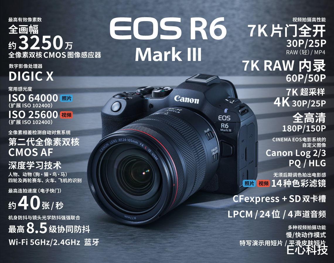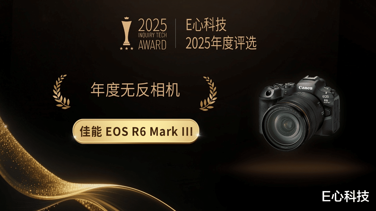 在本次E心科技2025年度评选中,佳能EOS R6 Mark III被选为“年度无反相机”。