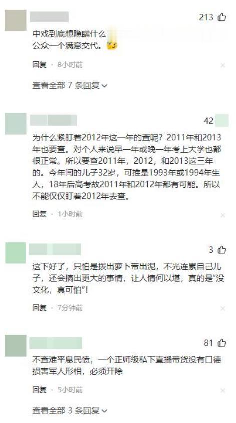 网友纷纷要求中戏公开,2012级表演系的完整招生资料,包括所有考生的分数、打分记录、考场录像和录取名单,彻查是否存在暗箱操作、名额顶替的情况。