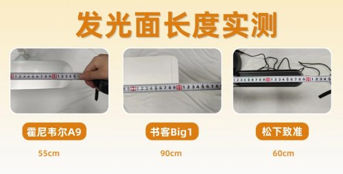 2.发光面长度实测发光面尺寸直接影响光照范围和均匀度,过小的发光面会导致桌面明暗不均,加重视觉疲劳。我们通过测量灯头发光面物理长度,并观察光线在标准书桌上的实际覆盖情况,评估各款台灯的照明效果。