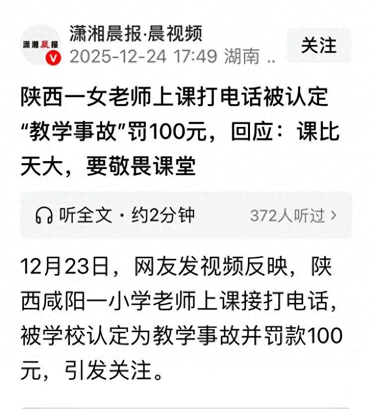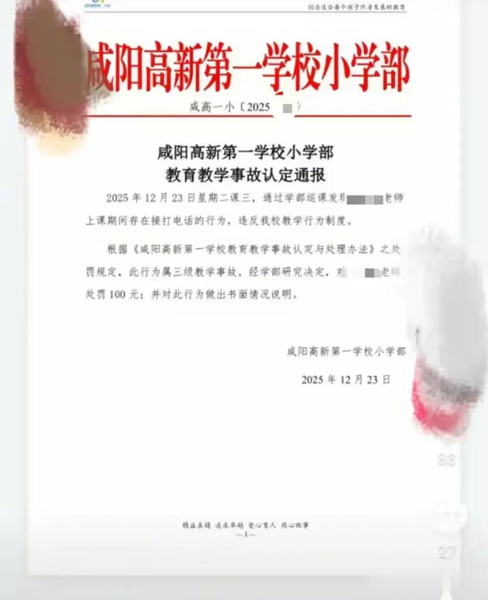 近日,陕西咸阳高新第一学校的一则处罚通报引发全网热议:该校一名教师因课堂上接打电话,被校方直接认定为三级教学事故,不仅被要求提交书面情况说明,还被处以一百元罚款。一纸通报,将课堂手机使用管理、教学事故认定尺度的争议推至台前,更让无数一线教师心生感慨:这般不问缘由的一刀切追责,究竟是规范教学,还是矫枉过正?