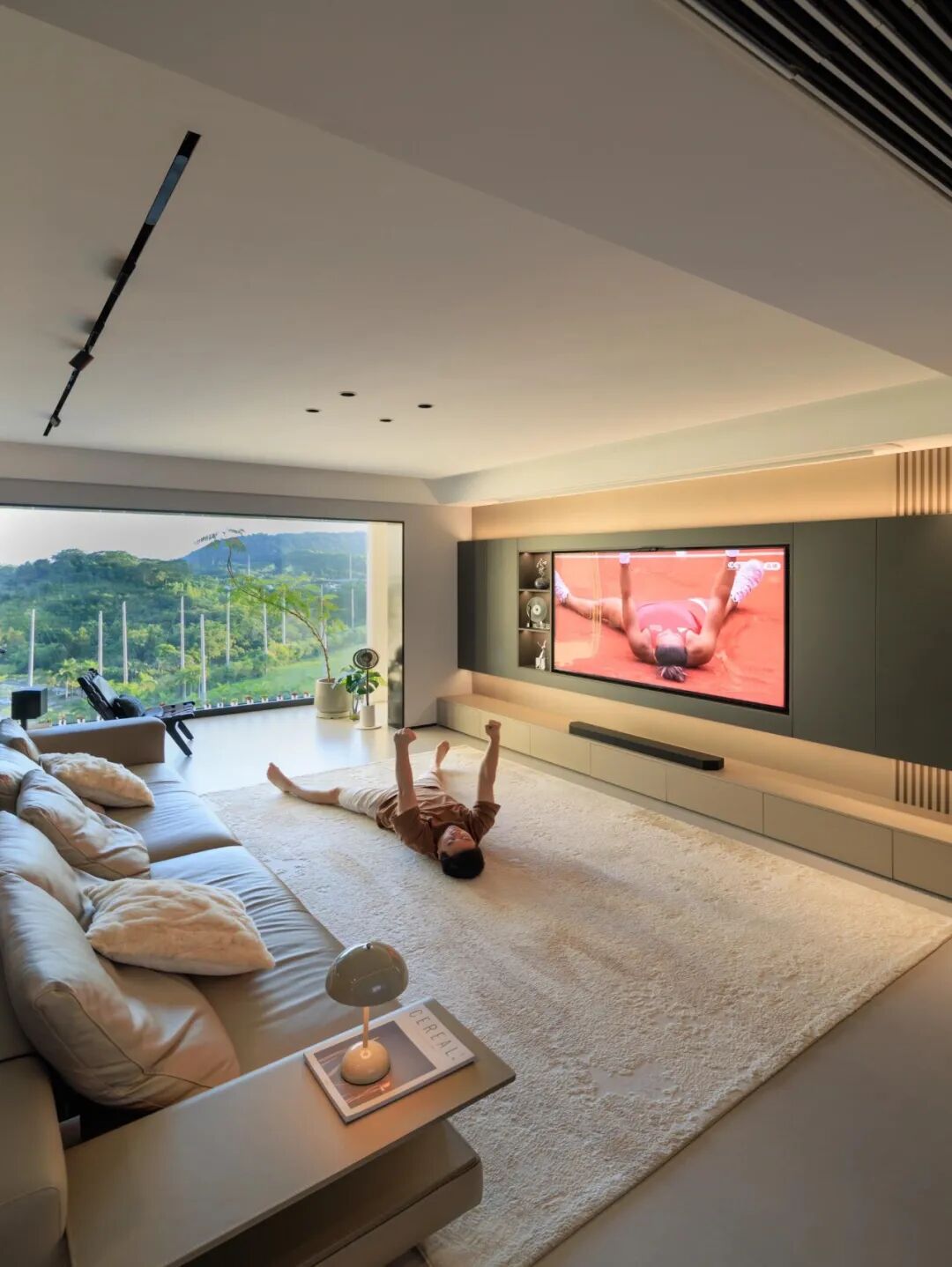 客厅早就不是专门用来“会客”的地方了,它是你每天下班后放松的地方,是孩子跑来跑去玩耍的地方,是周末看书追剧的地方,甚至是你居家办公、临时健身的地方。家要自己舒服,不用在意别人怎么看。