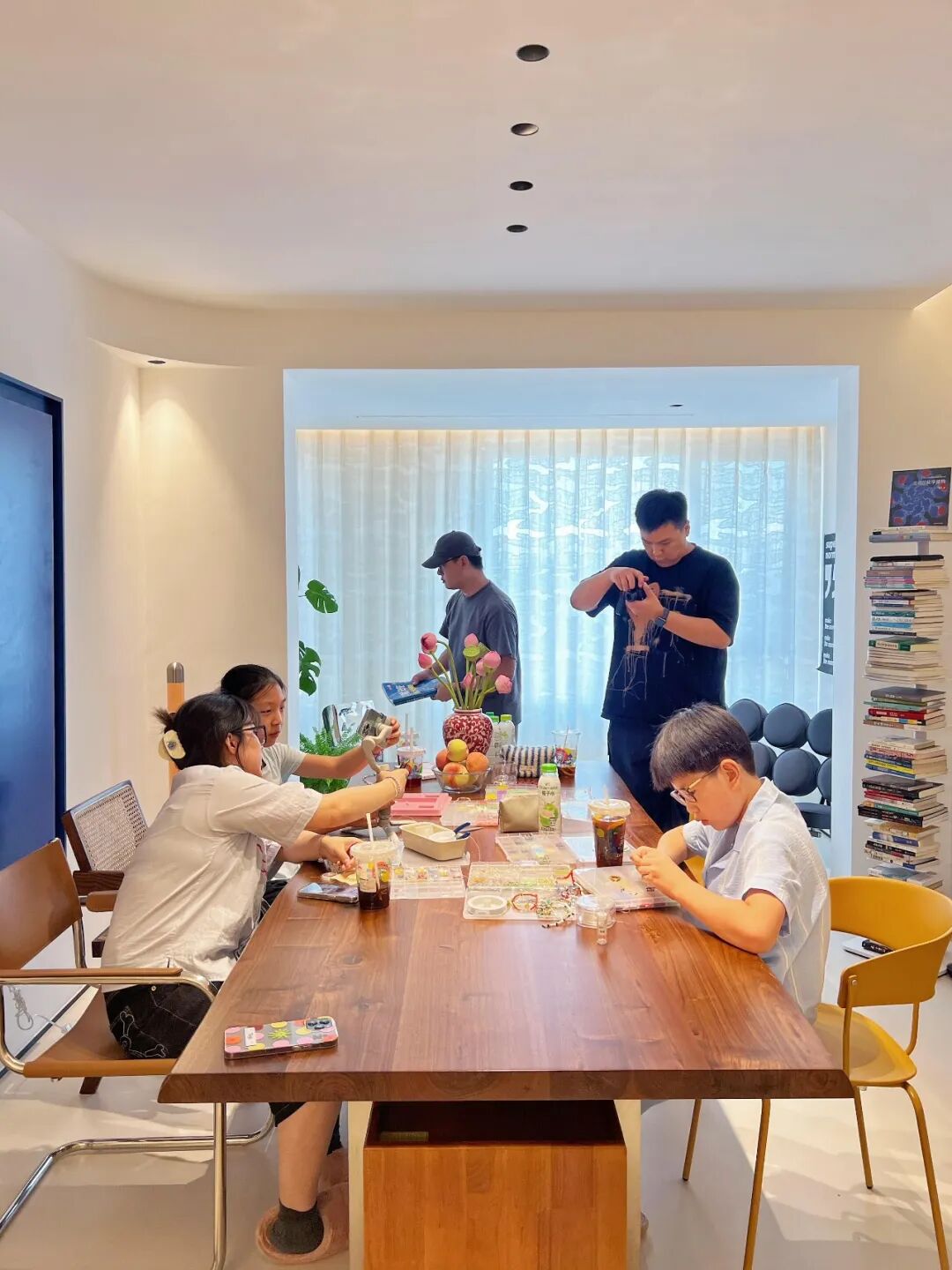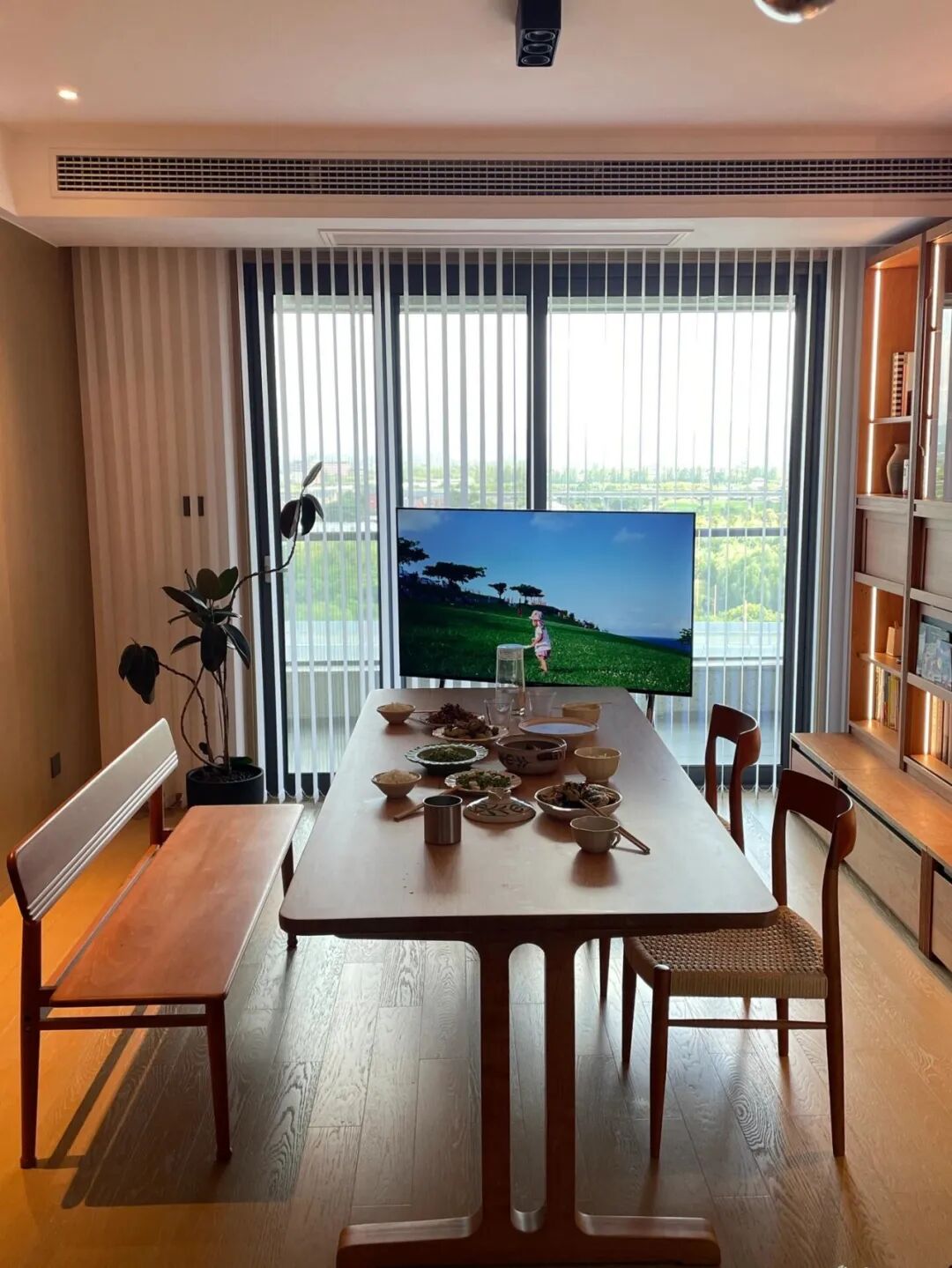 朋友说,他家没有茶几,也没怎么在客厅看电视,这张桌子就是家里的核心。