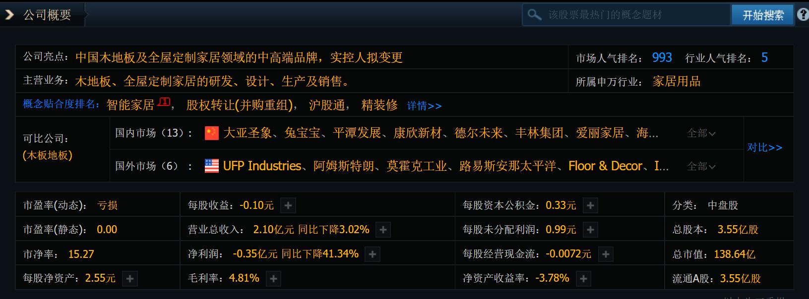 这家公司能大涨,核心就是三个利好凑到了一起:公司控制权变更、智能家居风口、旧改政策支持。虽然公司2024年净亏损3730.71万元,比上一年亏得还多,2025年一季度亏了1367.08万元,前三季度总共亏了3498.83万元,但自从2025年5月签了股份转让协议、6月完成控制权变更后,公司就有了翻身的机会——老板从丁福如换成了金亚伟,新老板计划整顿公司、调整业务,帮公司走出困境、扩大发展;它的核心业务是木地板和全屋定制,在行业里有一定的品牌知名度,还拥有159项专利,得过“国家绿色工厂示范企业”的称号,客户涵盖房地产公司、经销商和普通消费者,同时还赶上旧改政策的东风,拿到了万科等企业的旧改订单,大家都看好它后续的订单情况。