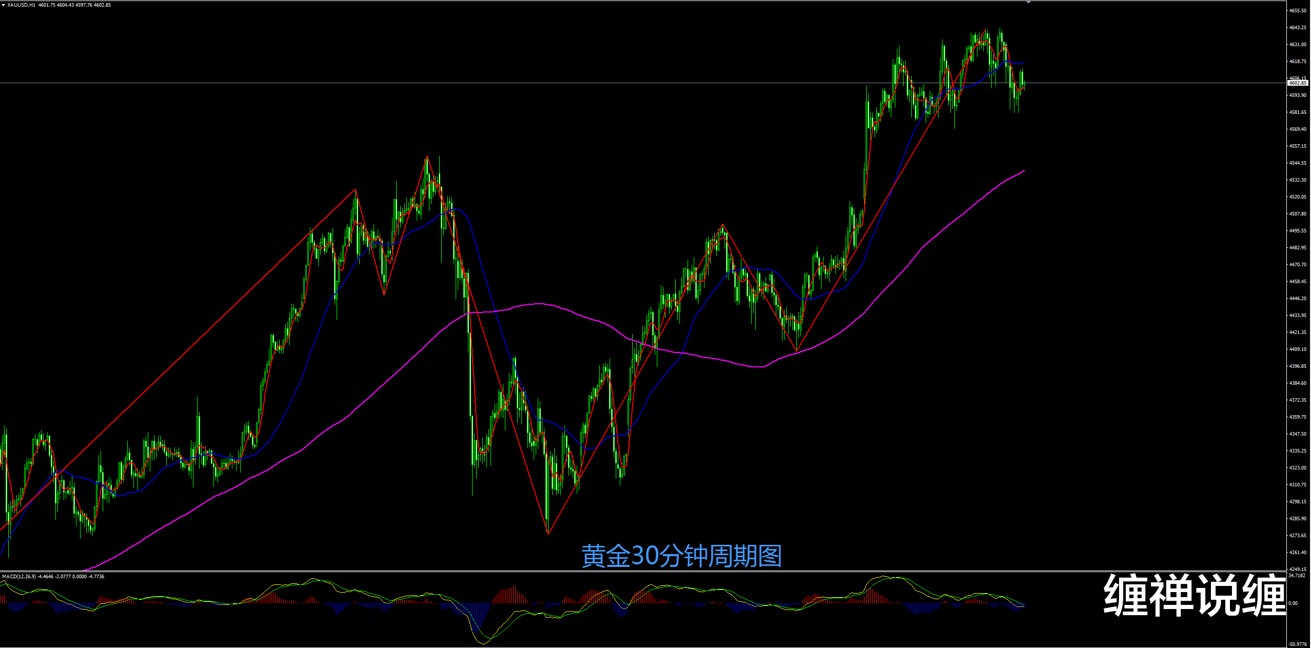 黄金30分钟短线向下调整,如果黄金向下跌破4580,那么黄金30分钟短线可能转弱势,那么黄金30分钟可能将继续下探。短线黄金30分钟震荡,如果突破4643,那么黄金30分钟有望延续上涨,黄金短线5分钟如果能突破4615,那么短线可能有望短线强势延续,有望向上侧是4643。黄金短线回撤不改牛市格局,短线回撤顺势继续多!