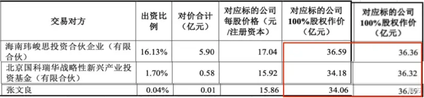 其中,对外部股东国科瑞华和张文良的交易估值进行了上调,分别从34.18亿元、34.06亿元提升至36.32亿元、36.19亿元;而易冲科技管理层持股平台玮峻思的交易估值则从原本的36.59亿元下调至36.36亿元。