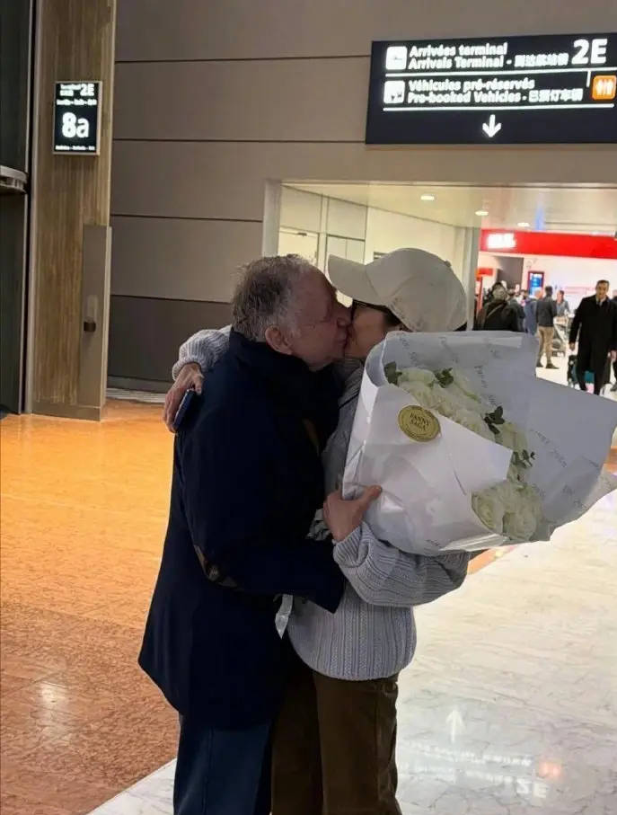 2月27日,杨紫琼晒出机场恩爱照,手捧鲜花与老公让·托德甜蜜对视后拥吻,画面浪漫满分。结婚多年的两人,爱意丝毫未减,在人来人往的机场大胆秀爱,甜度直接爆表。