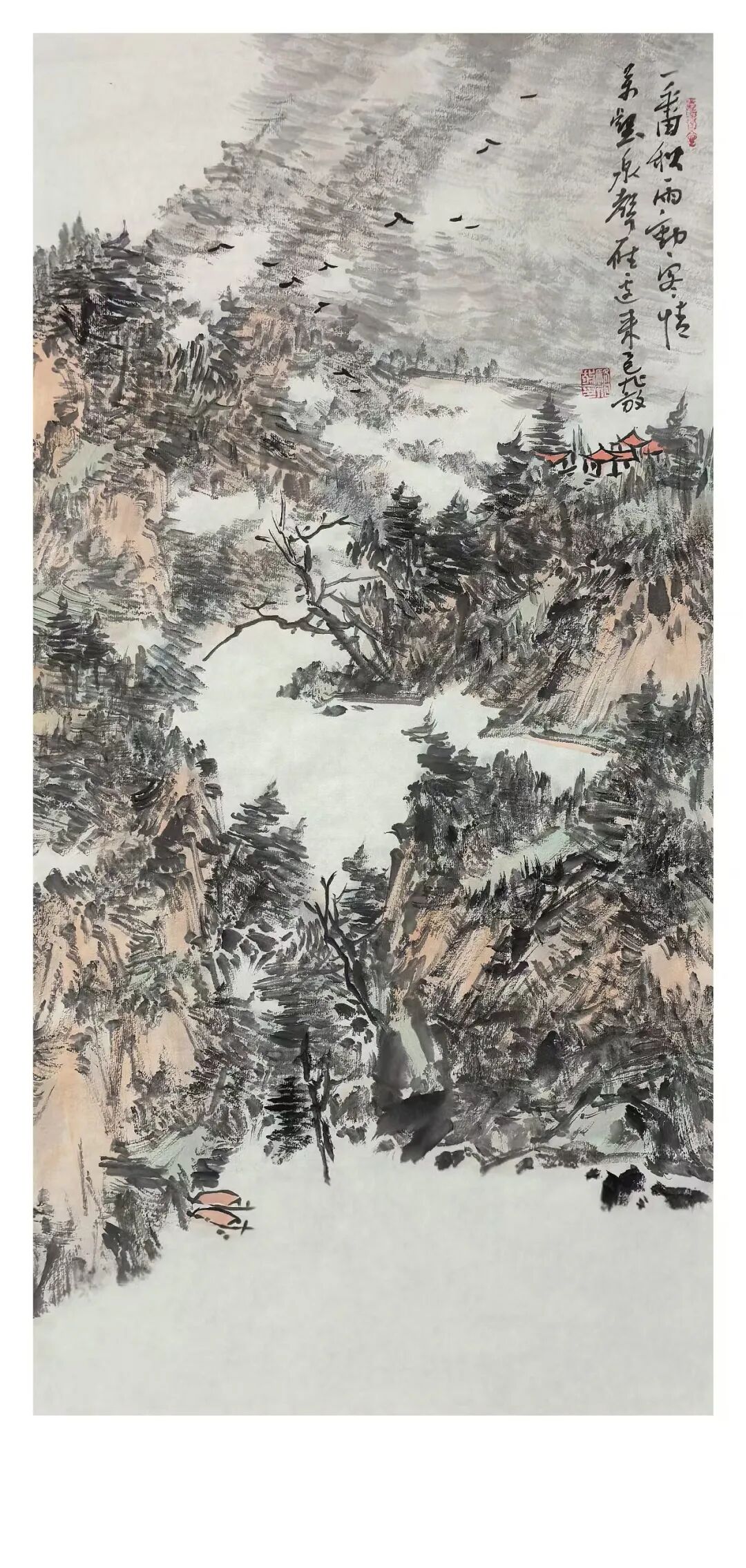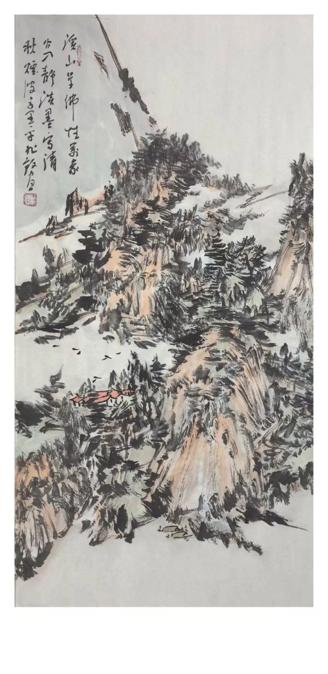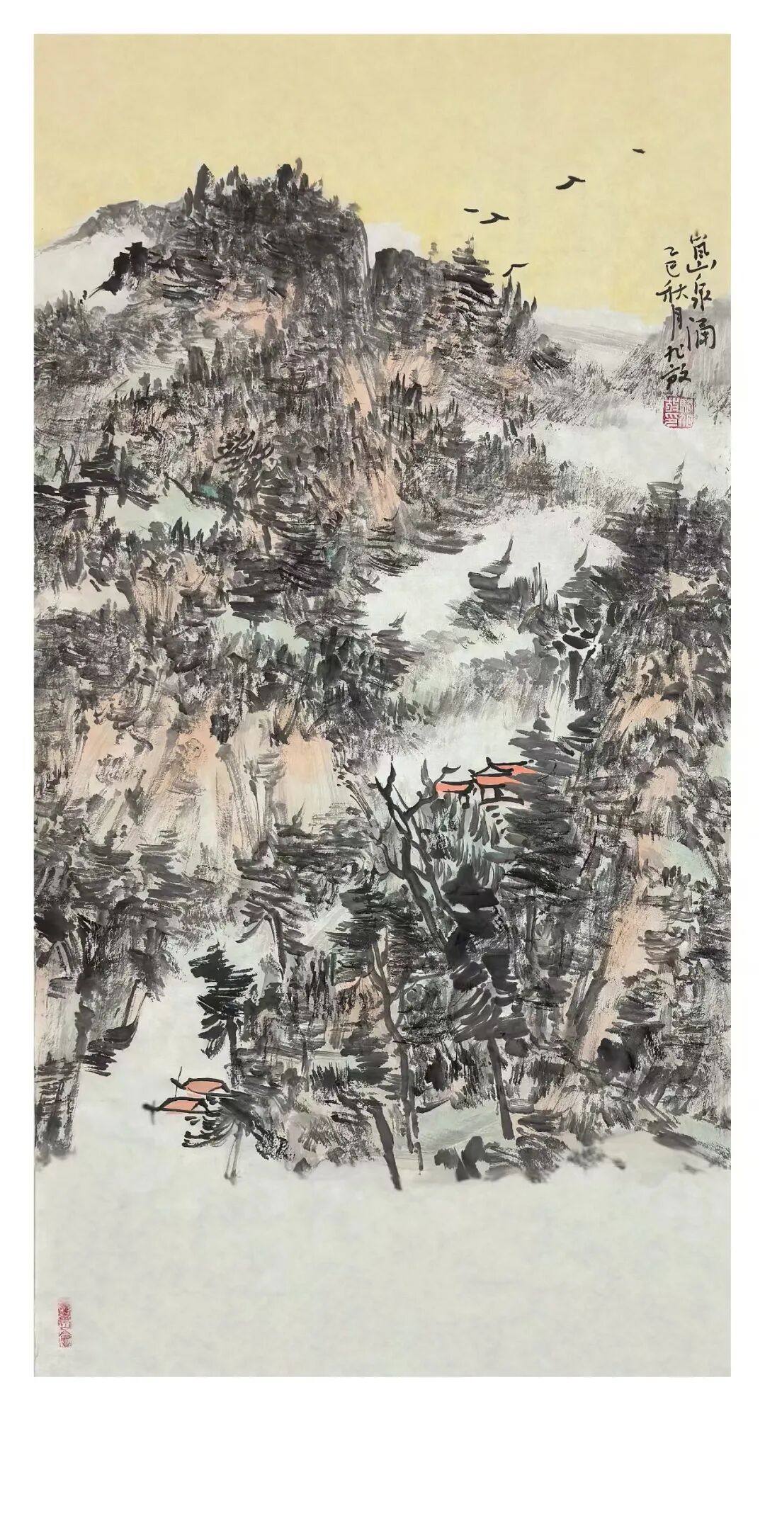 骆旭放艺术年表1990年《静物》入选“江苏省第四届水彩画作品展”。1990年《九华印象》入选江苏省全省画院、美术馆作品联展。1991年《总渠保卫战》入选江苏省抗洪救灾画展。1997年《少女》入选“江苏省水彩画作品年展”。1997年《松风图》入选“十五大精神颂——江苏省美术、书法作品展。1998年《悠悠鹤乡情》作品入选江苏首届美术节,并获铜奖。1999年《茫茫黄海滩》作品入选中国美协“迎九九”澳门回归中国画、摄影作品大展。1999年《阳春白雪音犹壮》作品入选中国美协“中华人民共和国成立5O周年、毛译东同志诞辰106周年”全国书画展。1999年《鹤乡情》入选中国美协“纪念孔子诞辰2550周年全国书画大展。2000年《山寨》入选新江苏画派、七彩世纪中国画大展。2000年《西部情歌》作品入选中国美协“民族魂、国土情”全国书画作品展。2001年《九寨风情》作品入选中国美协“2001年全国中国画作品展”。2001年《九寨风情》作品入选江苏省苐二届山水画展,并获铜奖。2001年《安居乐业》获江苏省税收与公民摄影书画展优秀作品奖。2002年《山水有情云作伴》作品入选中国美协“同里、保护世界遗产”国际中国画作品展。2002年《瑶寨风情》作品入选中国美协“西部辉”全国中国画作品展。2003年《飞流直下三千尺》入选中国美协“2003年全国中国画提名展”。2004年《秋水无声》入选中国美协"菜乡情",全国中国画作品提名展。2004年《山泉》入选中国美协2004年全国中国画画家提名展。2004年《西部吉祥图》入选“庆祝中华人民共和国建国55周年江苏省美术作品展。2005年《清风祥音》入选中国美协2005年全国中国画作品展。2006年《安居乐业》作品入选美在新江苏,并获优秀作品奖。2010年《清音》作品获中国美协“爱我中华”全国优秀书画作品奖,并在中国美术馆展出。2012年《国泰民安》入选中国美协2010年“民族百花奖”全国各民族美术作品展。2012年《国泰民安》入选中国美协“美丽家园、魅力新疆”第七届中国西部大地情中国画、油画作品展。2014年《军民鱼水一家亲》作品入选中国美协“重温经典”全国中国画作品展,并获优秀奖。2014年《国和民祥》入选中国美协“万里浦江”全国中国画作品展并获优秀奖。2017年《塬上金秋》入选中国美协"第三届娄东(太仓)全国山水画作品双年展。论文发表年表:2009年,中国人民大学“智慧谷”艺术专刋,题为“心源”2013年中国艺术研究院艺术专刋,题为“重品、悟道、求实、创新”2017年.11月“中国文艺家”主办:中国文联出版社,题为:点的壮大,线的延伸,2017年11月“美术文献”主办:湖北美术出版社,题为:对新时期国画发展的几点感想,2017年12月“大河美术”主办:河南省报业集团,题为:浅谈中国山水画对景写生五大误区,