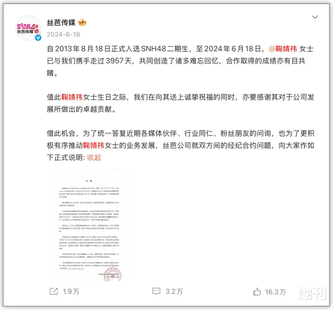 鞠婧祎的这场解约大戏,从她去年30岁生日的那天,就开始了。