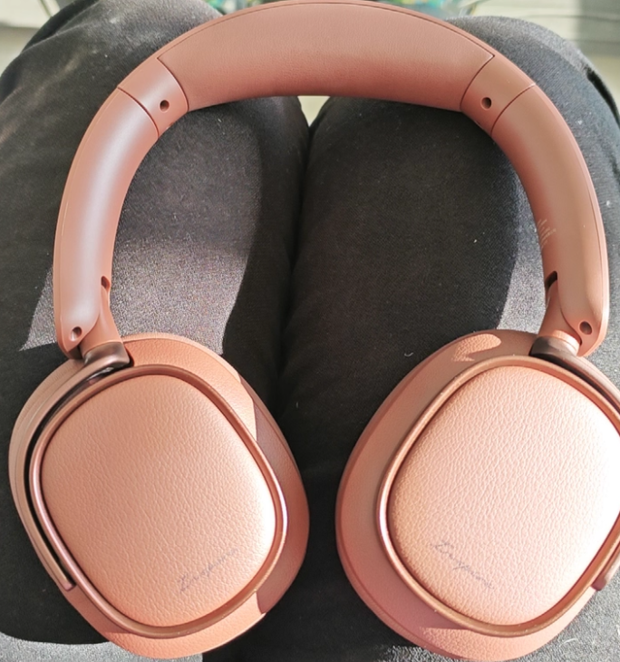 机身特很轻,才 225.2 克,比很多同类型头戴耳机都轻一截,戴在头上基本没什么感觉,哪怕从上班戴到下班,头顶也不会有重量感。耳罩人造皮革,柔软还舒适,戴眼镜镜腿能刚好卡在耳罩和头梁的缝隙里,长时间戴下来,耳朵周围也没压痕,收纳也方便,能直接折平,随便塞到通勤包里,也不占地方