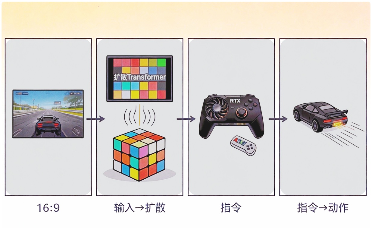 NitroGen把机器人那套「扩散Transformer」原原本本不变地用到游戏里了,画面从ViT编码起始,随后到扩散策略网络,最终抵达连续手柄信号,是端到端的,不存在规则脚本,也没有硬编码Q表。这一技术的难点就在于跨物理这一点,2D像素平台跳跃还有3D刚体赛车采用同一个动作空间,模型需要自己去弄清楚重力、摩擦、碰撞边界。