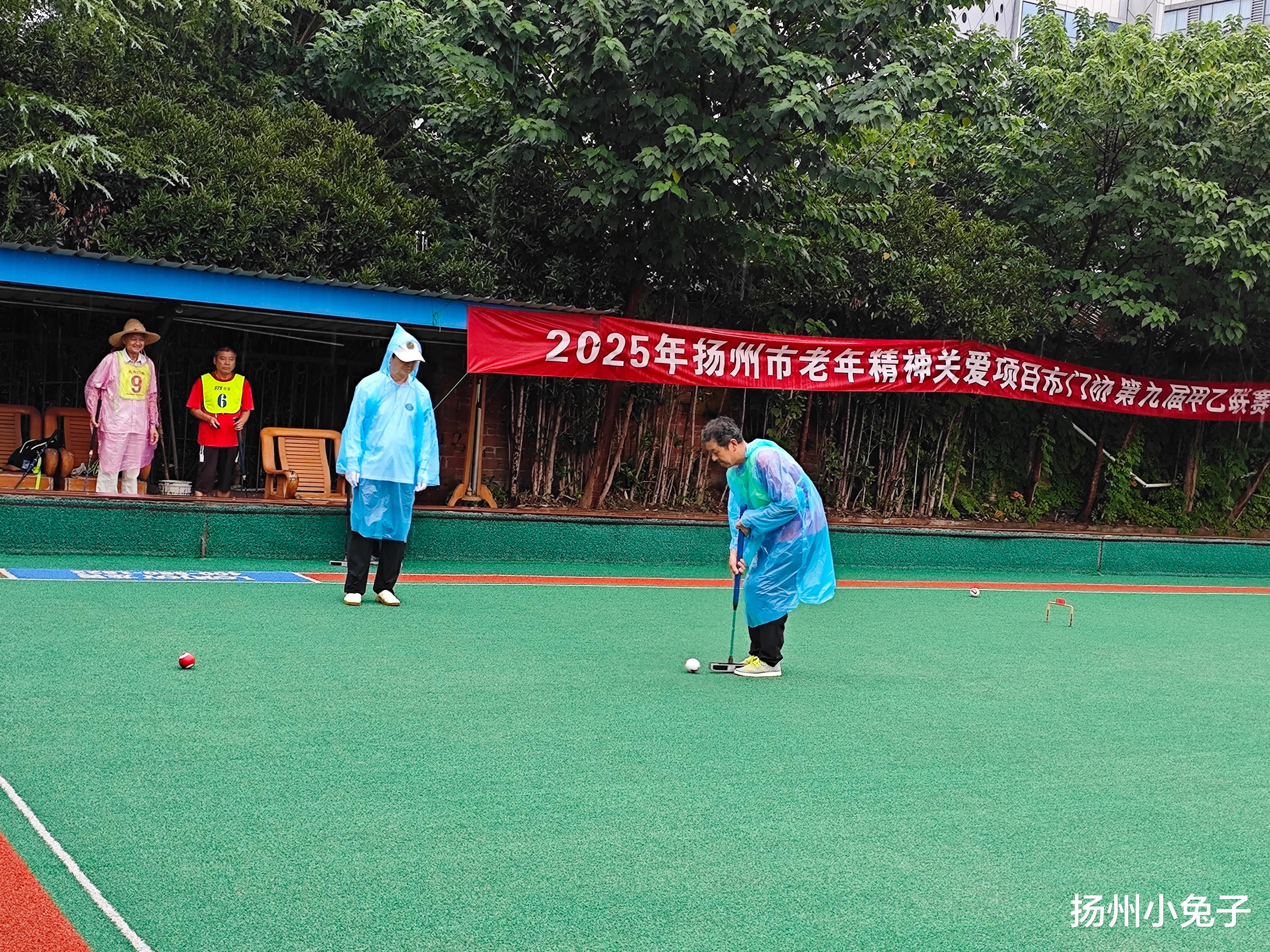 除此以外,一个优秀的门球运动员,需要适应的还有很多。譬如在比赛过程中突然天气变了,刮风下雨降温,比赛却不会中断。球员就需要以最快速度调整好状态,接受风雨的挑战,努力打好每一杆球。