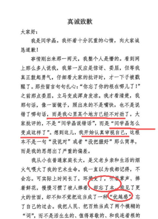 道歉信里写得再诚恳,也改变不了她忘本的事实。