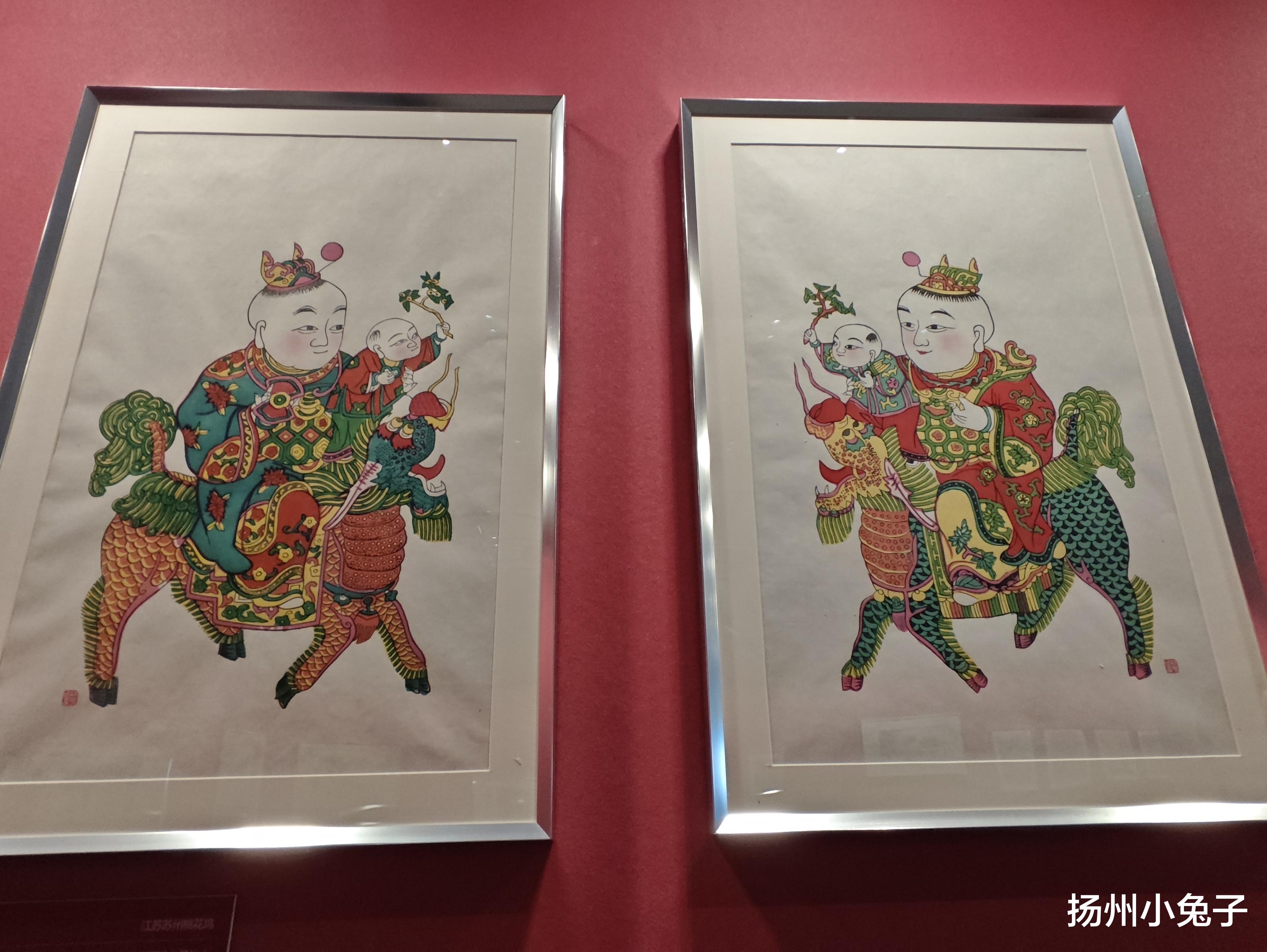 这不,扬州大运河博物馆里,恰巧过年期间有一个规模不大的年画展。饶有兴趣地欣赏一番,有一种意想不到的惊喜。且欣赏吧,不用管属于哪个流派哪个风格,喜欢就行。