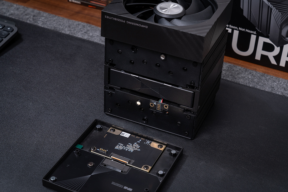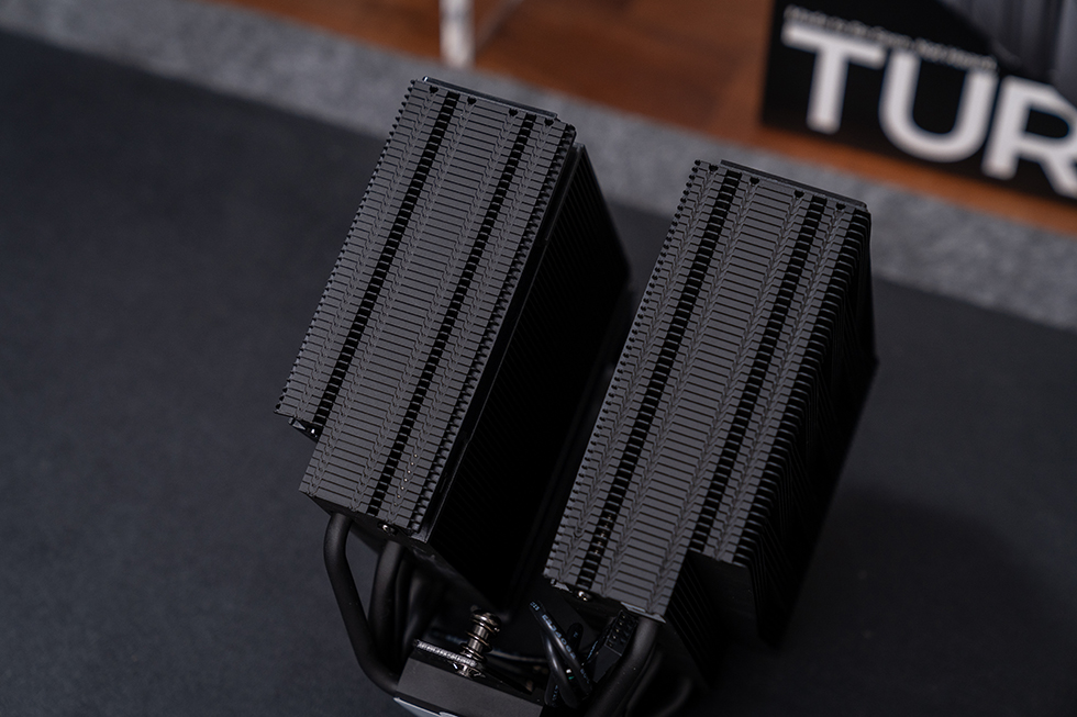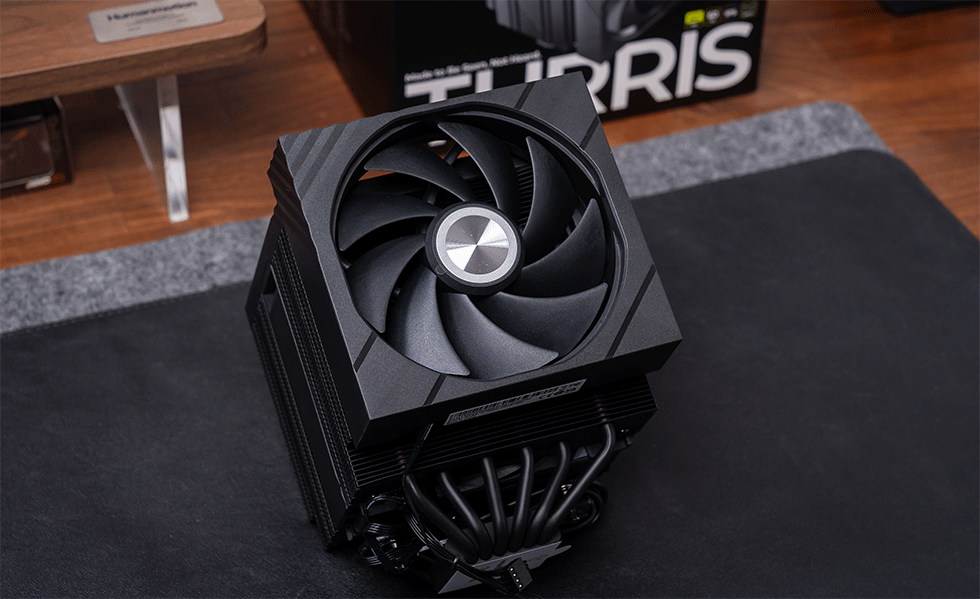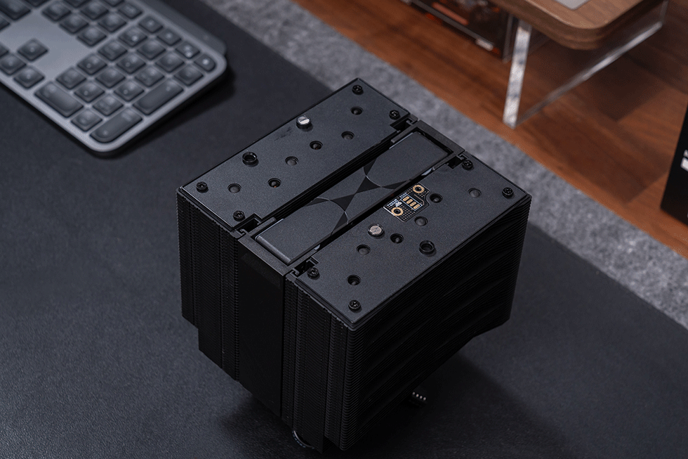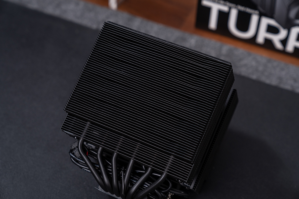顶部配备磁吸式顶盖,拆卸便捷,取下后可看到内部整齐排列的散热鳍片与热管,做工精细。散热鳍片采用精密冲压工艺,边缘光滑无毛刺,间距均匀,既保证了散热面积,又能减少风阻。