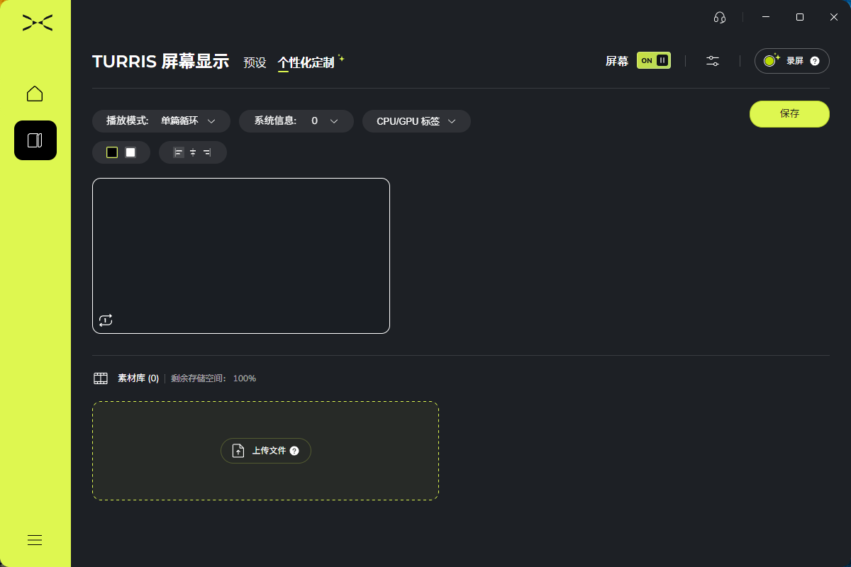 除了系统内部自带的预设主题外,软件还支持个性化定制,可以根据用户自身需求,上传屏幕主题素材和设定显示形式。并且支持录屏功能,能实时截取屏幕画面用于素材使用,十分便捷。
