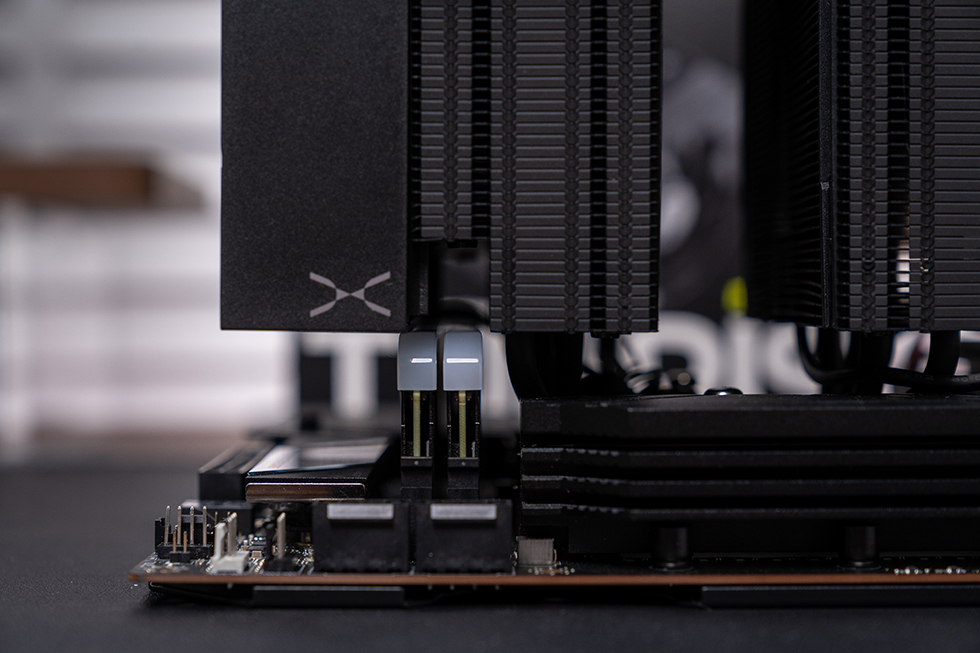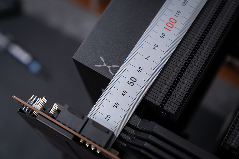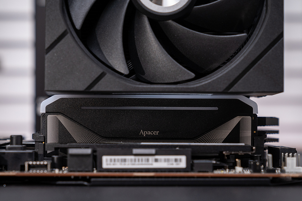 内存兼容性是风冷散热器的常见痛点,风屿620针对性解决了这一问题,前部风扇采用可调滑轨风扇支架,最高支持55mm高马甲内存,实测44mm高马甲内存可实现风扇与顶盖平齐,既不影响美观,也不会遮挡内存。